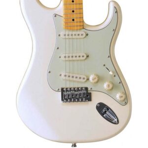 Guitarra electrica tipo Strato TG-530 LPB L/AWH, construida en cuerpo en Basswood, brazo en arce, diapason en arce (Claro) pickguard color Aged white, color del cuerpo Blanco Olimpico, 3 Pick Ups Single Coil Tagima, 1 control de volumen, 2 controles de tono, clavijeros y puente cromados.